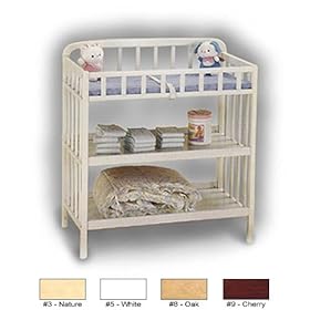 CONTEMPORY CHANGER is a contempory styled table designed to fit into any nursery. It has a rounded arches with flat slat railings and safety belt to keep your baby safe during those moments. Two spacious shelves beneath. The convenient changing station accommodates all your nursery and changing necessities.